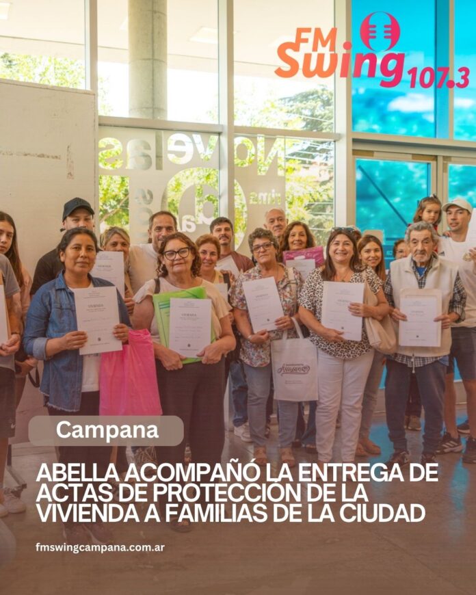 El intendente Sebastián Abella acompañó este martes la entrega de 18 actas de Protección de la Vivienda (Bien de Familia), un trámite fundamental que permite a los vecinos resguardar legalmente su propiedad frente a posibles conflictos judiciales.