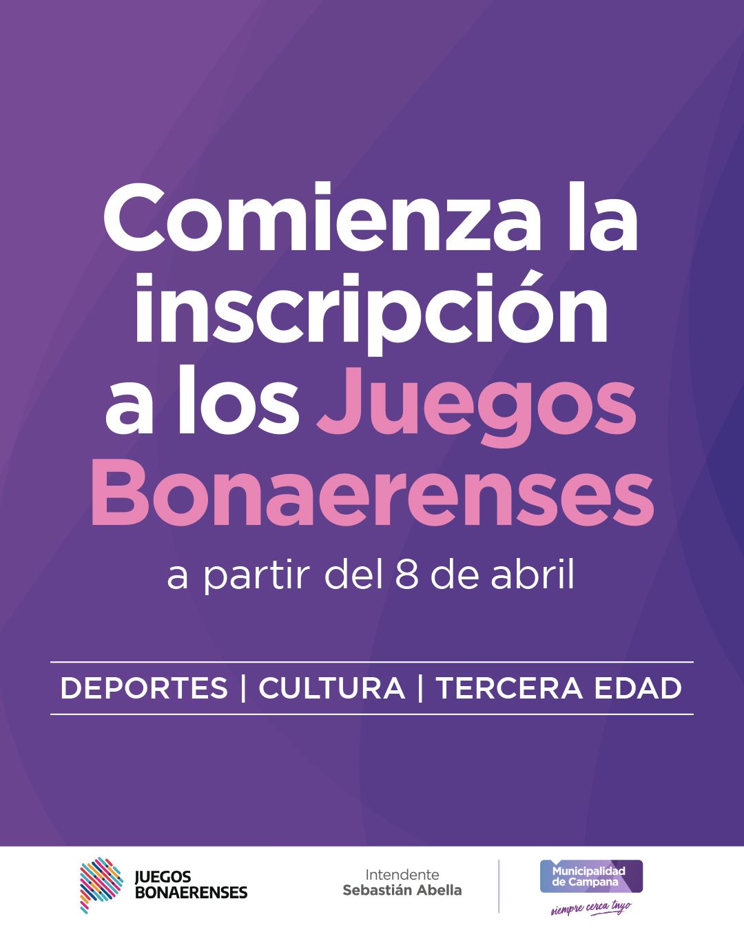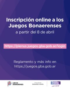 La Secretaría de Inclusión, Educación y Cultura de Municipio informa que este miércoles 8 de abril abre la inscripción a los Juegos Bonaerenses 2026 para el deporte y la cultura tanto para juveniles como a adultos mayores.