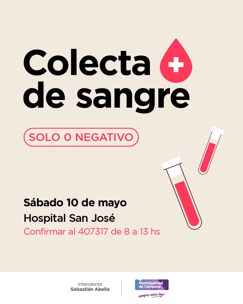 La Secretaría de Salud del Municipio realizará este sábado 10 de mayo una jornada de donación de sangre de 0 negativo. Los donantes voluntarios que quieran participar deberán confirmar su asistencia este viernes comunicándose al teléfono 407317, de 8 a 13 horas.