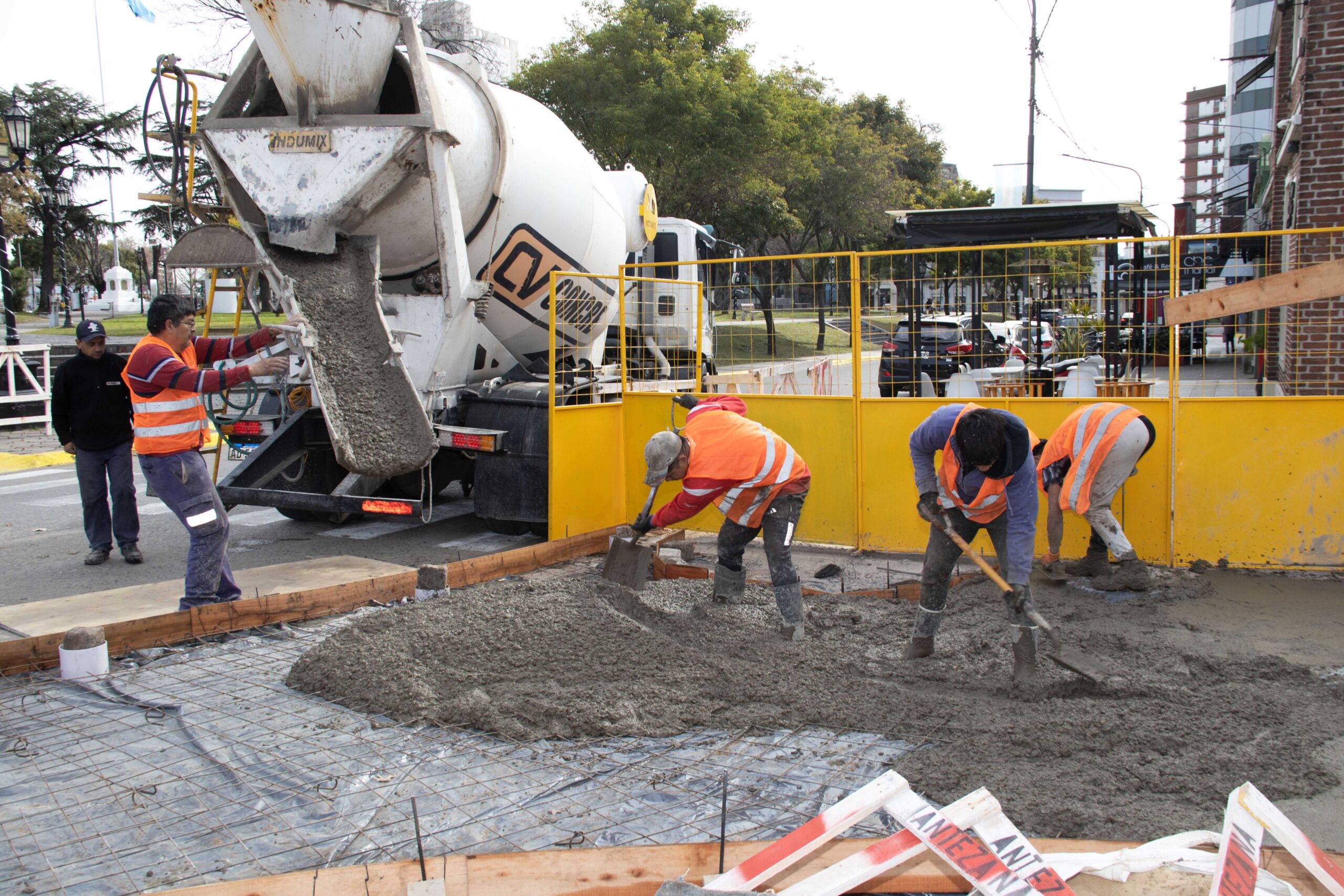 El Municipio sigue adelante con el proyecto de la nueva plazoleta de Av. Mitre y Belgrano. Y, este miércoles, comenzó a colocarse el hormigón del suelo del espacio que tendrá una superficie aproximada de 225 m2.